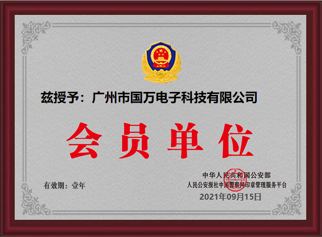 2021年9月15日,廣州市國萬電子科技有限公司(國萬科技KWOKMAN)因在2010-2021年經(jīng)營期間,信譽良好、無經(jīng)營異常、無重大負(fù)面輿情,符合中國警察網(wǎng)印章管理服務(wù)平臺推介規(guī)定,現(xiàn)已被納入印章管理服務(wù)平臺推介目錄,同時被授予了“會員單位”免審辦理資格。